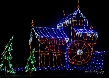 Fantasy Land of Lights is a nonprofit project presented by the Rotary Bartlesville Daybreak Club and continues to celebrate both the holidays and local heritage. Among the most popular attractions is Bartles Mill, a tribute to one of Bartlesville’s original landmarks, featuring a moving water wheel and running stream in a massive 24-foot-tall display. The park also honors local culture with unique scenes such as an Indian chief and Santa flying in a biplane, and guests are welcome to drive through the park as many times as they like.