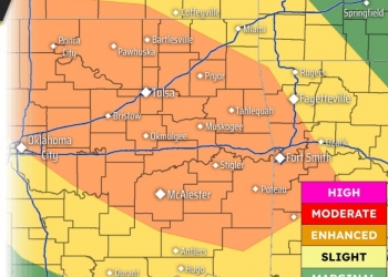 The frontal boundary that moved through Thursday night is expected to lift back northward Saturday afternoon and night, which will aid in increasing thunderstorm chances for northeast Oklahoma and southeast Kansas.