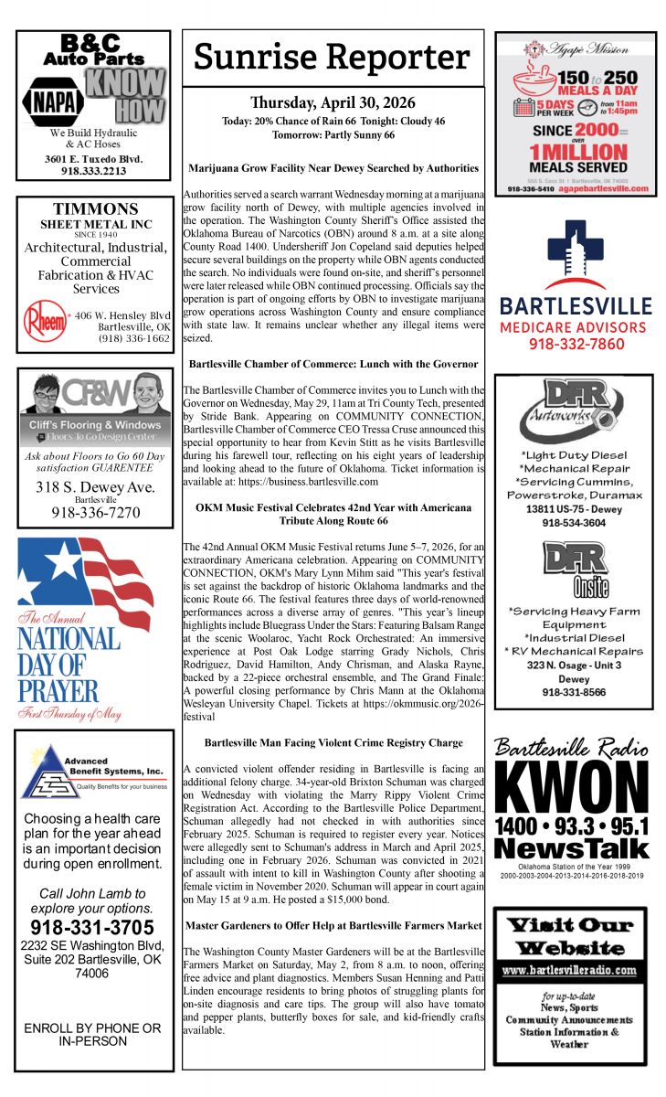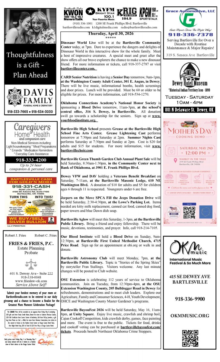 Bartlesville Radio: The area’s best source for news, weather and sports!